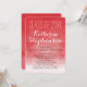 Classic crimson scarlet red with a wash of watercolor background with white vertical text and script graduation party invitations. Creative artistic representation of vibrant and real colours.