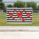 This Valentine's Day banner features red watercolor hearts with black and white stripes. Easy to customize with your message and family names (if not needed, leave blank).