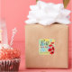 Personalized sticker design featuring red watercolor poppies on a yellow/green/blue gradient background. The text is fully customizable.