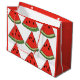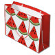 Red Watermelon Slices Large Gift Bag originally designed by Nisha Prabhu. The Red Watermelon Slices Large Gift Bag features a vibrant and playful design adorned with cheerful watermelon slice patterns. The lively red, green, and black color palette evokes the freshness and sweetness of summer, making it perfect for gifting occasions. Ideal for birthdays, summer parties, or any celebration, this gift bag adds a fun and fruity touch to your gift presentation, making every gift feel special and festive.