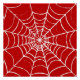 A spider's web forms in a bold, blood-red coloured void.