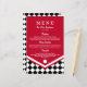 Red Wedding Menu with Black Chequered Pattern