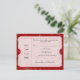 Matching RSVP Reply Card to couple with the red Ticket Invitations, a unique and stylish way to celebrate your special wedding day. Elegant design with swirl background and faux ticket design. Customize online with your info