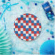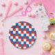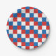 Red white and blue chequered pattern paper plate