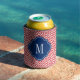 Cute trendy monogrammed can or bottle cooler with a preppy Greek key pattern. Personalize it with a custom monogram or other text in a chic quatrefoil frame. Click Customize It to change text and fonts to create a unique one of a kind gift for your bridesmaids and wedding party! Contact me before ordering to customize patterns or design to coordinate with any wedding colours.