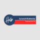 This professional name tag features a name in white on the top blue background and the title or business name below on a red background. Hello in white text is in the circle on the left and can be changed to Vote, Hi or another short word. Personalize the text fields or edit using the design tool to select a font style, size, and colour you prefer.