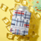This can cooler features a patriotic - red, white and blue - madras pattern. There is a customizable area to add your own text such as family name or beach house name as well as a location.
