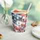 Great monogram paper cups. The front and back of these special cups are festive red, white, and blue (a decorative representation of some of the American symbols). Use the template to customize. Add your desired monogram or initial.