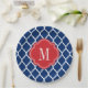 Red White and Blue Moroccan Quatrefoil Monogram Paper Plate