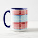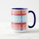 This pretty mug features a vintage plaid pattern reworked and created digitally by me into red, white and blue tones, for a patriotic feel. The handle and inside are a blue tone to complement the artwork.