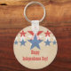Fun and stylish Red, White and Blue Star Cascade Independence Day Keychain featuring a faux textured paper background and descending rows of red, white, and blue stars. This unique keychain is a perfect way to show your American pride this July 4th! Easy to customize, simply add your own text in the space provided. This design is also great for Memorial Day!