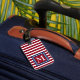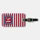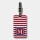 Classic red and white stripes with a patriotic red, white and blue monogram on the front and solid blue with white text on the back. Personalize the monogram on the front with your choice of initial and the contact information on the back.