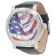 Watch featuring a grunge image of the US flag. The hour number indications are optional.