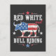 Red White and Bull Riding American Cowboys Postcard