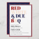 Modern and minimalist "Red, White and Due BBQ" baby shower theme featuring 4th July patriotic American flag colours and stars.