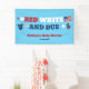 Celebrate the patriotic baby with this adorable Red, White, and Due baby shower banner. A clothesline displays the message "Red, White, and Due" hanging by clothespins joined with USA-styled baby items. The background is blue with a subtle star pattern. Add your own message underneath. Perfect to welcome guests to your July 4th themed baby shower, baby sprinkle, or sip and see. Available with matching products.