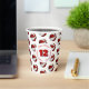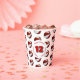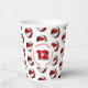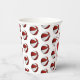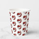 These basketball birthday party paper cups feature multiple small red & white basketballs arranged in a simple drop pattern - text on a white circle graphic can be customized, currently the number 12 to represent a child's age encircled by the words, "Happy birthday" - by katz_d_zynes