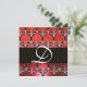 RED WHITE BLACK DAMASK CARNATIONS MONOGRAM INVITATION