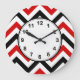 Red, White, Black Large Chevron ZigZag Pattern Large Clock