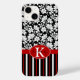 Classic colours, red, white and black, in an attractive floral and stripe design; customize with your name & initial.