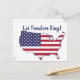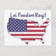 Postcard with the image of the continental United States overlaid with the red, white, and blue American flag. Text says, "Let freedom ring."