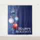 Bring the spirit of Christmas to your home or office with this beautiful three dimensional vector graphic of red; white and blue tree baubels hanging down off the end of pretty white dotted ribbons framed by faux sparkling white lights and stars. Personalize the templates with your custom Christmas greeting; message or quote.