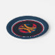 Deep Blue rims circle the plate with a Deepest Blue background and a modern art basketball graphic/logo. Seven inches in size and made of paper. Customize or buy as is.