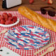 A camouflage print with red white and blue colours based on the same hues as the official colours of th US flag.