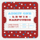 CUSTOM favour sticker in a red, white, and bright blue carnival / circus themed admission ticket design.