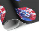 Red White & Blue Cat With American Flag Background Wrapping Paper