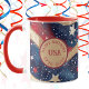 This customizable mug is a fantastic option for personalizing your celebration! You can add any name and customize the date range of 1776-2026, along with the phrase "Happy Birthday USA," or modify it to your preference. This makes the mug an ideal party favour for guests at various events, from Corporate to Red, White, and Gold-themed birthday parties, dinner barbecues, Fourth of July celebrations, Memorial Day, Veterans Day, family reunions, National Boss Day, and election day festivities. The design features prominent American colours—red, white, blue, and gold—arranged in stylish stripes and stars, adding a festive touch to any occasion.