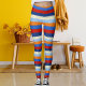 Red White Blue Orange Wool Striped Pattern Knitted Leggings