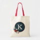 Red White Blue Rose Pattern Elegant Monogram Tote Bag