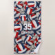 This cool volleyball beach towel, suitable for her or him, features a seemingly endless pattern of volleyballs in varying sizes and at varying depths, turned every which way - some of the volleyballs have red and blue panels - player name and jersey number are customizable - by katz_d_zynes