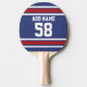 Red White Blue Sports Jersey Custom Name Number Ping Pong Paddle