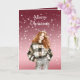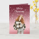 Red White Bokeh Dots Christmas Girl Card