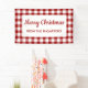 Welcome guests to your Christmas party with a custom banner featuring a rustic red and white buffalo check border with your text in a white rectangle in the centre. It reads "Merry Christmas" in a dark red script font with your name below it in a modern sans serif font. Perfect for a holiday party. Customize it with your text in the sidebar.