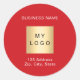 A red background, white text. Personalize and add your business name, logo and address or text.