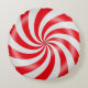 Red and White Hard Peppermint Candy Spiral Design Round Pillow