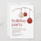 Invite your friends or colleagues to celebrate the holiday season with this simple modern invitation to your holiday party. The design features red and white Christmas balls hanging from a single branch. Personalise with your event details including the date, time, location and RSVP information.