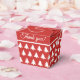 Easily personalize your Christmas party favour gifts with your message, thank you, name or monogram using the text template. This is a unique idea for your small Christmas gifts or stocking stuffers this holiday season. There are offset rows of white Christmas trees on the red background and larger trees stacked in the centre front creating a geometric design. The top is a matching solid red. Note: If you want to remove the text, replace it with a blank space in the template.