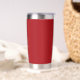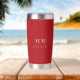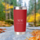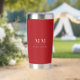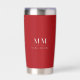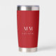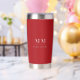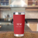 Red background colour. Personalize and add your monogram initials and full name. White text.