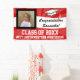 Red and white high school or college colours. Big giant yard sign or indoor/outdoor banner, Congratulations to the graduate of the class of (your year). Customize this personalized yard banner sign with your graduate's photo, name, year and school or other custom text. Personalized outdoor or indoor graduation party sign banner with your graduate's year, name, high school. Spectacular way to congratulate the graduate and welcome family and guests to your graduation party .