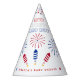 Red White and Due Fourth of July firecrackers and fireworks baby shower paper hat.