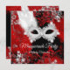 Red White Feathers Mask Masquerade Birthday Party Invitation