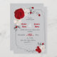 beautiful red and white flowers and grey leaves geometric wedding invitation