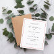 A classic, modern white background. Decorated with a slim red frame. Personalize and add your names and the details.
