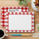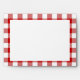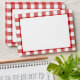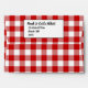 A classic red and white gingham pattern envelope inside and outside this envelope, with your names and return address on the back flap.