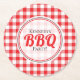 Red gingham coasters for your annual family bbq party. Personalize with family name.