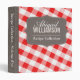 Southern country inspired rustic recipe binder designed with a diagonal red and white gingham pattern and grayish brown canvas texture illustrations and your name and text custom printed and personalized. This binder will complete the look of your kitchen and makes a great gift too.